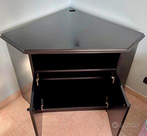Meraviglioso mobile artigianale in legno nero angolare . Fatto artigianalmente, è un bellissimo mobile tv.