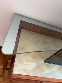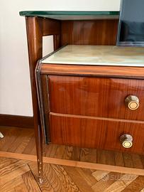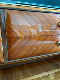 Mobile tv anni 50’ con doppio ripiano, il primo effetto marmo il secondo in vetro.
