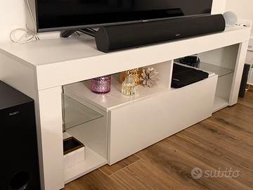 Mobile tv bianco con cassetto contenitore 35 cm Larghezza 140 cm lunghezza 50 cm altezza