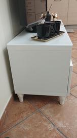mobile TV Besta ikea con piedini sagomati e piano in vetro