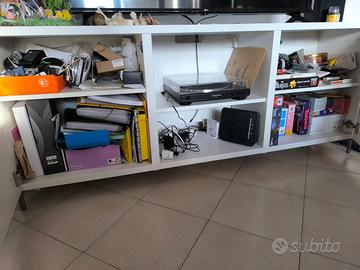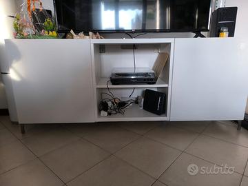 Vendo mobile TV Ikea Besta, con ante bianco lucido e scompartimento in mezzo aperto. Ideale per poggiare la tv sopra e da usare come credenza / armadietto sotto.