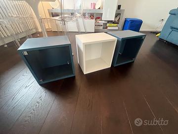 Vendo, per cambio arredamento soggiorno, i seguenti mobili: - mobile tv brimnes ikea - 2 cubotti eket blu con vetro - 1 cubotto eket bianco