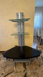 Include due ripiani in vetro temperato e un vano a giorno inferiore e cassetti laterali .