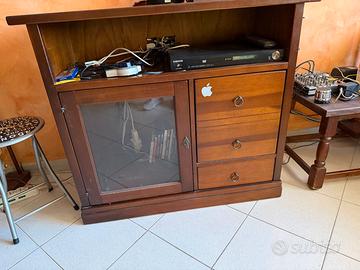 MOBILE TV COLOR NOCE VANO CON VETRO SOTTO A SX E TRE CASSETTI A DX OTTIMO STATO (NON INCLUSI TECNOLOGIA ED ALTRO RAFFIGURATO IN FOTO), NO SPEDIZIONE, TRASPORTO A CURA DELL'ACQUIRENTE. DIMENSIONI REALI ED UFFICIALI:PIANO SUPERIORE LARGHEZZA 98 cm PROFONDITA’ 44 cm, ALTEZZA MOBILE 86 cm, LARGHEZZA COLONNA INFERIORE (SOTTO IL PIANO) 90,5 cm, PROFONDITA’ 40; BASE: LARGHEZZA 93,5 cm, PROFONDITA’ 42 cm.