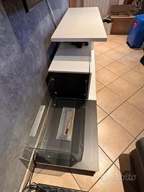 mobile tv larghezza 220 ( estebdibile) profondita 50, doppio cassettone con chiusura a pressione e angolo caminetto a bioetanolo funzionante.