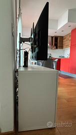 Mobile TV con braccio orientabile Parte sinistra con anta e ripiano, parte destra con due cassettoni. Meccanismi push and pull per apertura/chiusura. Misure 120x40x64 cm circa Televisore NON incluso