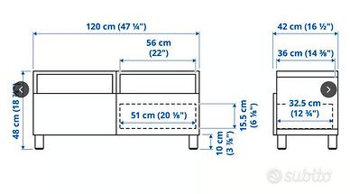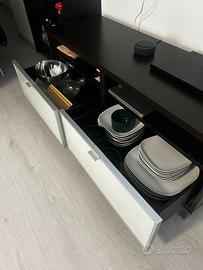 Mobile TV con cassetti BESTÅ Ikea nero con cassetti bianchi e mordente argento. 120x42x48 cm Spedizione e smontaggio a carico dell'acquirente