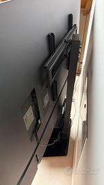 Vendo mobile TV in ottime condizioni, completo di supporto per televisore e tre ripiani in vetro nero perfetti per decoder, console, router e dispositivi multimediali.