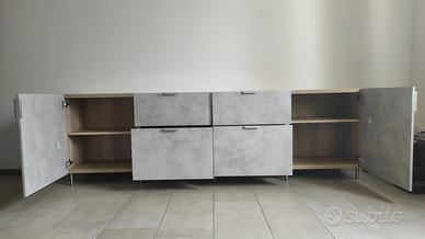 Splendido mobile TV/credenza IKEA modello BESTA (240x 41x74 cm) composto da una struttura (60x40x64) + 1 mobile TV (180x40x64), 2 cassetti (60x15x40), n. 2 cassettoni (60x25x40), 2 ante (60x64), pannello superiore per tv - impiallacciatura di rovere con feritoia passacavi, in perfetto stato pari al nuovo. Smontaggio e ritiro a cura acquirente.