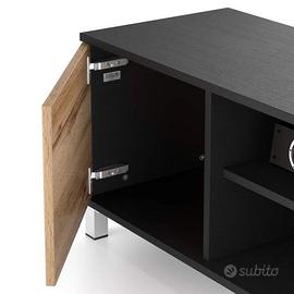 Mobile tv con ante nero frassino e rovere rustico. Stile scandinavo. Made in Italy.