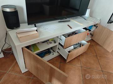 Bel mobile tv super capiente e ben massiccio, con 2 cassettoni push e 2 sportelli push, doppio colore bianco esternamente e colore noce chiaro formalmente. Usato 6 mesi li devo sostituire solo per mancanza di spazio con una colonna a muro.