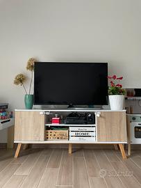Mobile porta tv dimensioni cm L150 x p40 x h63 (da terra compresi piedini), Bianco e Rovere.