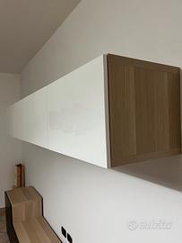 Vendo mobile Tv + mobile superiore per trasloco, comprato 2 anni fa ed è in ottime condizioni! Mobile tv color rovere con sportelli antracite, mobile superiore color rovere con sportelli bianco lucido!