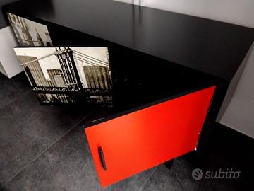 Mobile TV tre ante. Struttura nera e grafica di New York sulle ante.