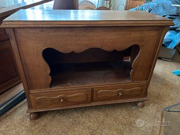 Mobile Tv e portaoggetti con 2 cassetti legno massello artigianale localita’ Pistoia