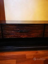 Mobile porta tv, ma utilizzabile anche diversamente . 3 cassetti e 1 ripiano . Stile etnico ORIGINALE . Molto solido e robusto. Si può usare anche per esempio come seduta 3 posti . Colore marrone scuro testa di moro con venature più chiare. 150x42xh40. Solo ritiro a mano no spedizione.