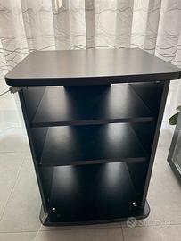Mobile Tv con ripiani e anta in vetro. Altezza 75cm, larghezza 53cm, profondità 47cm.