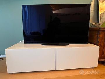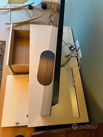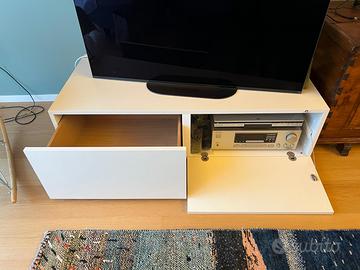 Mobile porta TV/hifi con cassetti e uscite/ingressi H=34,5 L=128 P=63 cm Laccato/laminato bianco Cassetto sx e sportello a ribalta dx Uscita posteriore per i cavi alimentazione/altoparlanti Griglia superiore per cavi TV Serie "K|Net" della Verardo, fuori produzione Da ritirare a Trieste Opicina