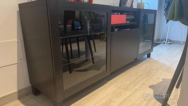 Vendo mobile TV IKEA, colore nero effetto legno. Dotato di due sportelli laterali trasparenti e un cassetto centrale. Come nuovo. Vendesi per trasferimento.