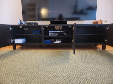 Vendesi mobile TV IKEA BESTA componibile. Colore nero-marrone, acquistato a febbraio 2025, quindi circa 1 anno di vita. Condizioni come nuovo, nessun segno di usura, vendo solo per trasloco in casa già arredata.