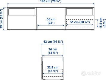 In ottime condizioni Bianco opaco Cassetti slow moving e anta centrale Vetro bianco satinato infrangibile Predisposizione per allaccio cavi TV