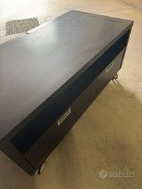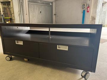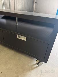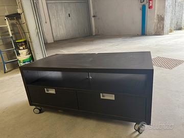 Mobile TV Ikea color ebano dotato di due cassetti e ripiano porta oggetti aperto. Con ruote. Possibilità di abbinare tavolo tondo allungabile e credenza da soggiorno in coordinato (prezzo da scontare)
