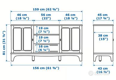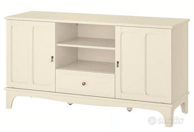 Mobile TV ikea Lommarp Misure 159x45x81 Colore beige, perfette condizioni. Il mobile è attualmente fuori produzione e quindi introvabile. Consegna a mano a Lucca. Trasporto a carico acquirente. Prezzo del nuovo 250 euro