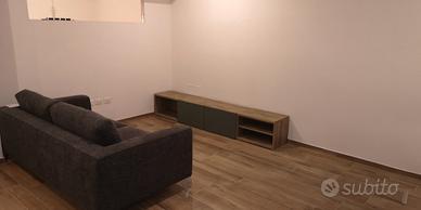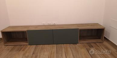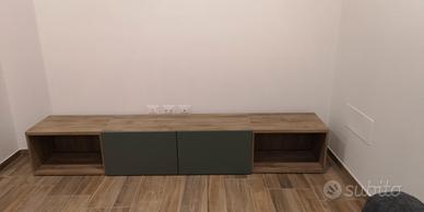 Mobile TV Ikea - mod BESTÅ con due ante centrali colo verde salvia e ripiani. Misure: 240x41x39 cm
