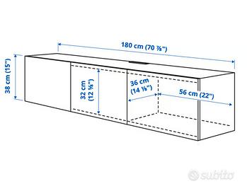 Mobile tv con piedini, per uso versatile, a terra o fissato a muro.