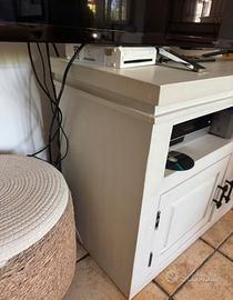 Vendo elegante mobile porta TV in legno massello verniciato bianco, perfetto per soggiorno o salotto. Il mobile è in ottime condizioni, robusto e stabile, con un design classico e funzionale.
