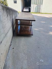 Vendo bellissimo mobile porta TV in legno massiccio, realizzato da falegname, solido e resistente. Dimensioni: Larghezza: 136 cm Profondità: 48 cm Altezza: 45 cm Perfetto per televisori fino a 55 pollici, con ampio spazio anche per decoder, console o altri dispositivi grazie al doppio ripiano. Dotato di rotelle, comode per spostarlo facilmente. Design semplice e moderno, adatto a diversi ambienti (soggiorno, taverna, studio).