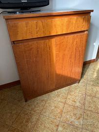 Mobile in legno con cassetto e ante, adatto come mobiletto tv in cucina o come mobiletto svuotatasche con specchio sopra in ingresso.