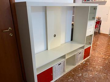 Mobile tv KALLAX. Dim 185x150x40 . In ottimo stato, comprensivo di porta tv, cassetti, 2 cestoni in vimini e ripiani in vetro. Come nuovo. Si vende per mitate esigenze. Il mobile è stato smontato dopo aver messo l annuncio. Ritiro zona Cornelia, Roma