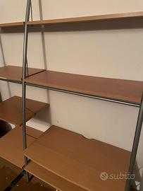Vendo mobile porta TV / scaffale multiuso con struttura in metallo grigio e ripiani effetto legno.