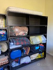 Arredo usato ma ricondizionato, realizzato interamente in legno listellare verniciato, solido e versatile. Utilizzabile come mobile singolo oppure componibile sovrapponendo più elementi (libreria o parete attrezzata). Modificabile in fabbrica: aggiunta ante inserimento o modifica ripiani personalizzazioni su misura Soluzione pratica ed economica con qualità da produzione interna. Svendiamo a metà prezzo causa rinnovo locali.