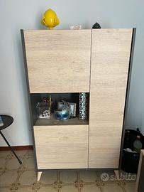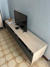 Comprende mobile tv e madia, del mobile c’è un ulteriore pezzo da appendere sopra uguale alla base non ancora montato. In buonissime condizioni tranne la piccola sbeccatura presente in foto
