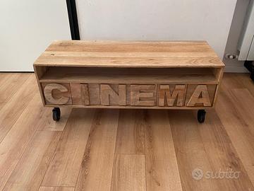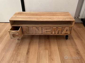 Mobile Tv Maison du Monde con scritta “cinema”, ogni lettera è un cassetto. ruote stile industrial. ottimo stato. Larghezza 120.0 cm Altezza 48.0 cm Profondità 45.0 cm Ritiro e trasporto a carico del compratore