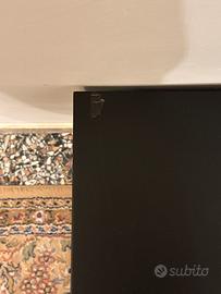 Vendo elegante mobile porta TV di Maison du Monde in stile contemporaneo, colore nero con dettagli geometrici oro e gambe in metallo dorato. Design molto raffinato, ideale per soggiorno moderno o ambienti chic.