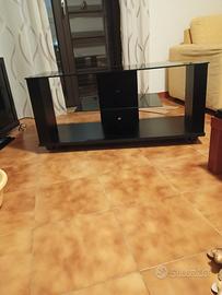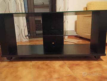 mobile nero TV con mensola e spazio dietro copri fili