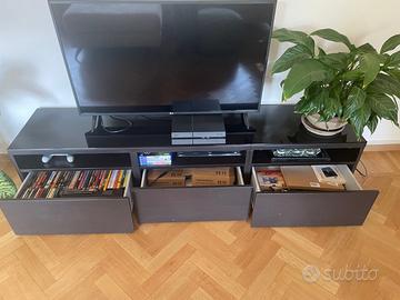 Mobile tv con base in vetro nero e 3 capienti cassetti Dimensioni: Lunghezza 180 cm Profondità : 40 cm Altezza 40 cm