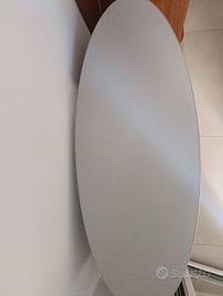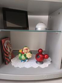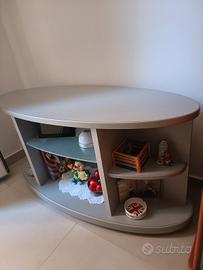Tavolino per TV o mobile d'arredo, uso a vostra descrizione.. come nuovo con piccola imperfezione in una scaffalatura come si evince in foto. Mobile a più ripiani con ripiano centrale in vetro.