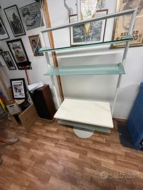 Mobile tv girevole con struttura in ferro e piani in legno e vetro temperato opaco