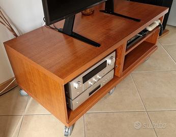 Mobile TV. Molto robusto, dotato di 6 ruote bloccabili per evitare spostamenti accidentali. Dimensioni: larghezza 120cm, altezza comprese le ruote 50cm, profondità 60cm. I due vani hanno una dimensione interna 46x30x58(profondità). Date le dimensioni ed il peso, non è possibile la spedizione. Per agevolare il trasporto, è possibile separare il piano superiore ed i due vani. Prezzo trattabile