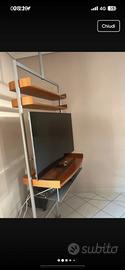 Mobile tv porada girevole a 360^ Altezza regolabile Mensola tv cm 102x53 Si installa a soffitto e sul pavimento Le mensole si possono posizionare a piacere In legno
