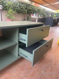 Dotato di 2 cassetti 1 anta e 2 vani a giorno.