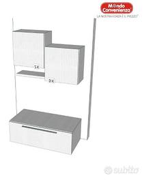 Vendo causa trasoloco mobile tv Mondo Convenienza formato da: cassettone porta TV 120x60cm + 2 cubi sospesi con apertura a sportello 60x40cm (già smontati e riposti in cantina) + mensola da inserire sotto 1cubo da 60X40cm (anche questa smontata già).Tutto il mobile completo non vendibile separatamente a 100e Non Trattabili, zona eur, chiedere di Adriano