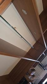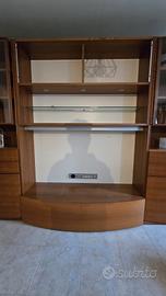 Mobile soggiorno color ciliegio, come in foto: Due vetrine laterali 2 cassetti per lato 2 ante basse laterali 1 cassettone centrale Con vetrina apertura scorrevole centrale in alto, attualmente smontata