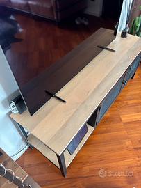 Mobile tv in stile industriale in condizioni pari al nuovo. Struttura in ferro battuto e robusto legno massello, foro posteriore passacavi. Misure: larghezza 150 cm altezza 55 cm profondità 46 cm Acquistato da Maison du Monde a 479 €