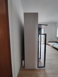 Mobile TV soggiorno in legno, retroilluminato con vetrina a 3 ante, molti scomparti da utilizzare. colore: beige e rovere scuro. misure: 330cm L, 48cm P, 195cmH(TV NON INCLUSO). Mobile nuovo appena comprato per appartamento in fase di arredamento