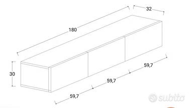 Vendo mobile TV sospeso MAI utilizzato e ancora imballato. L 180 * H 30 * P 32 Tre ante a ribalta, colore tortora